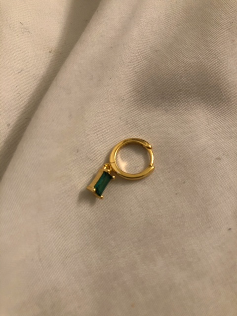 Aro de plata 925 bañado en oro con circonita colgante verde